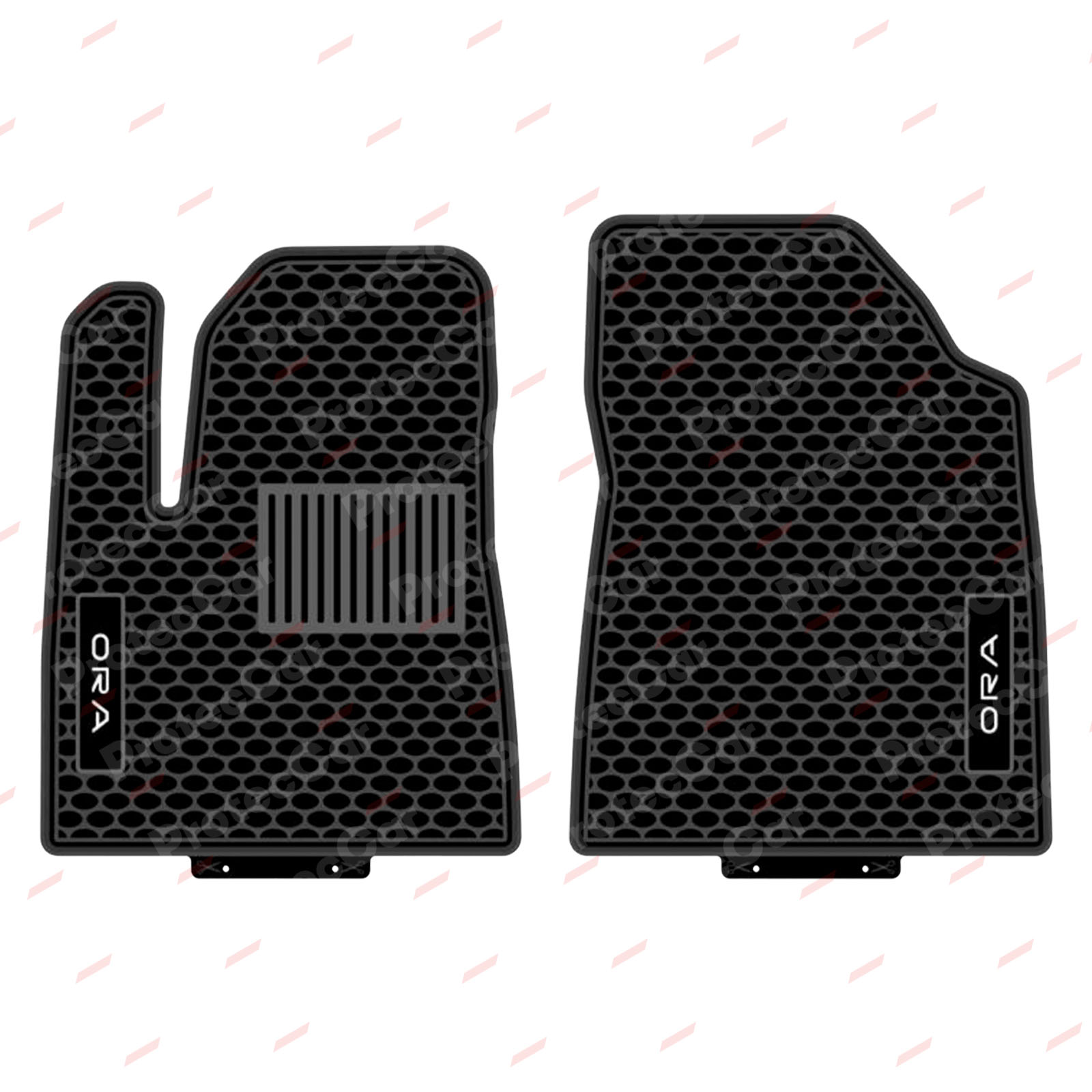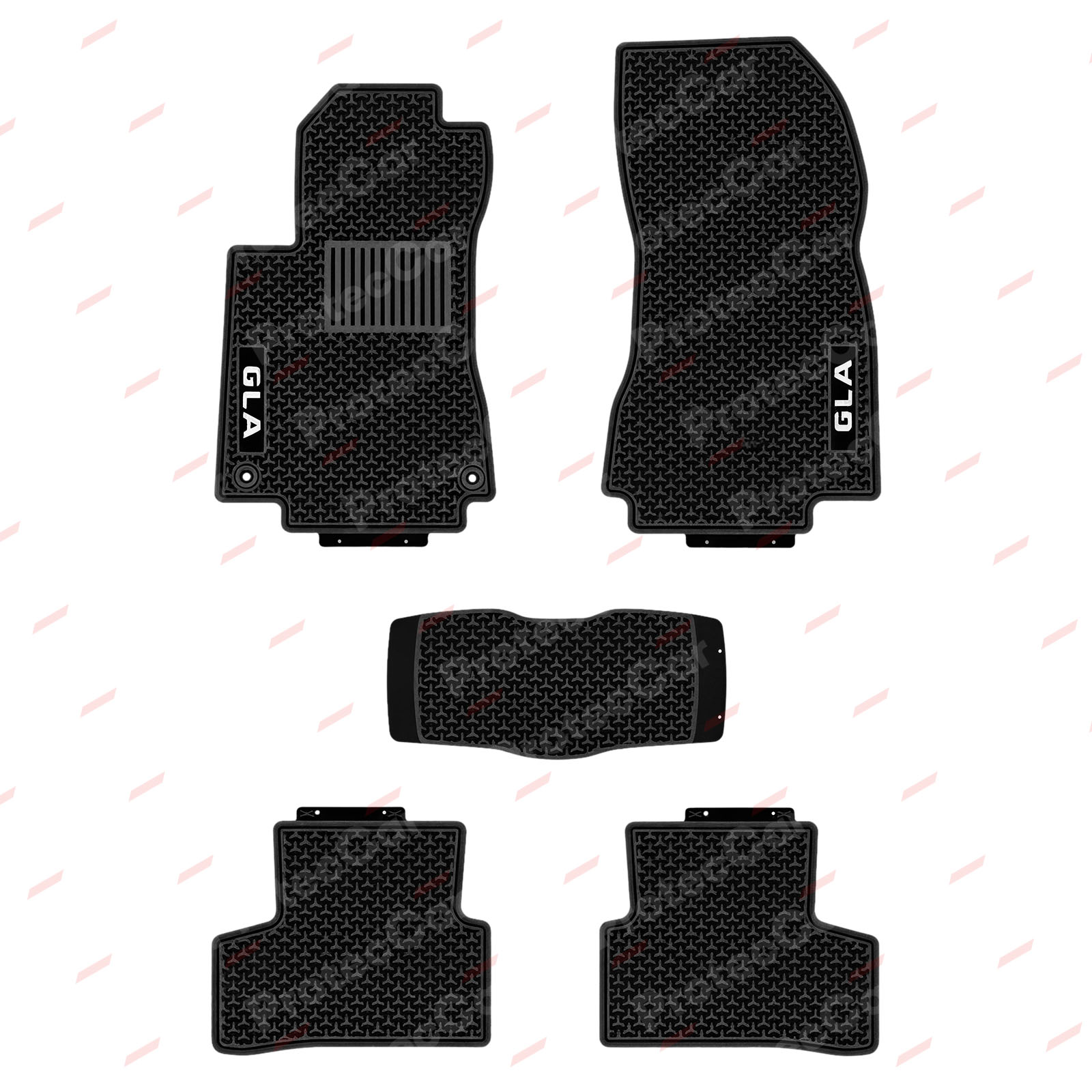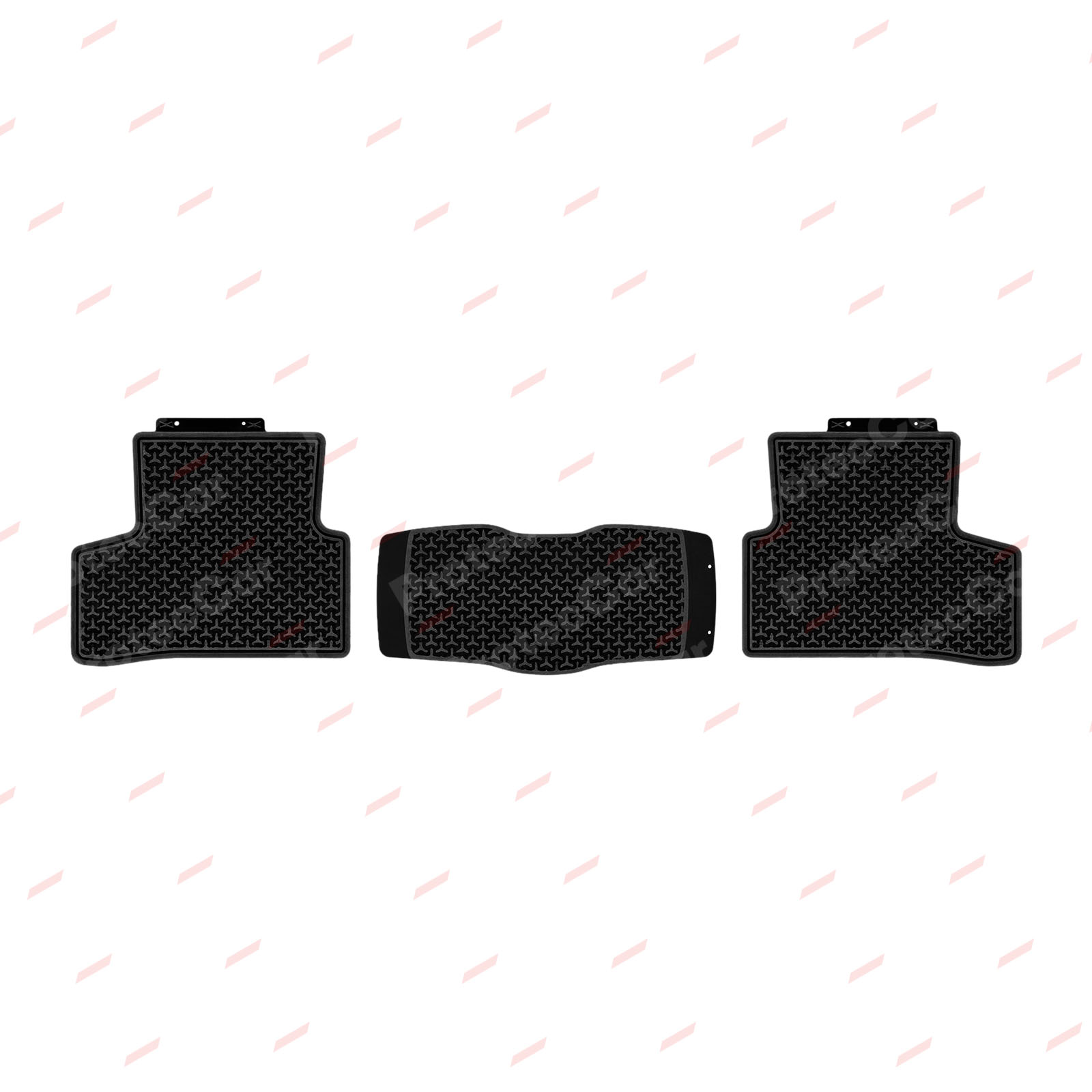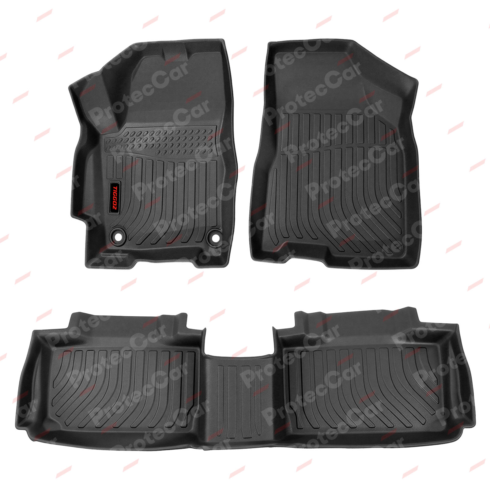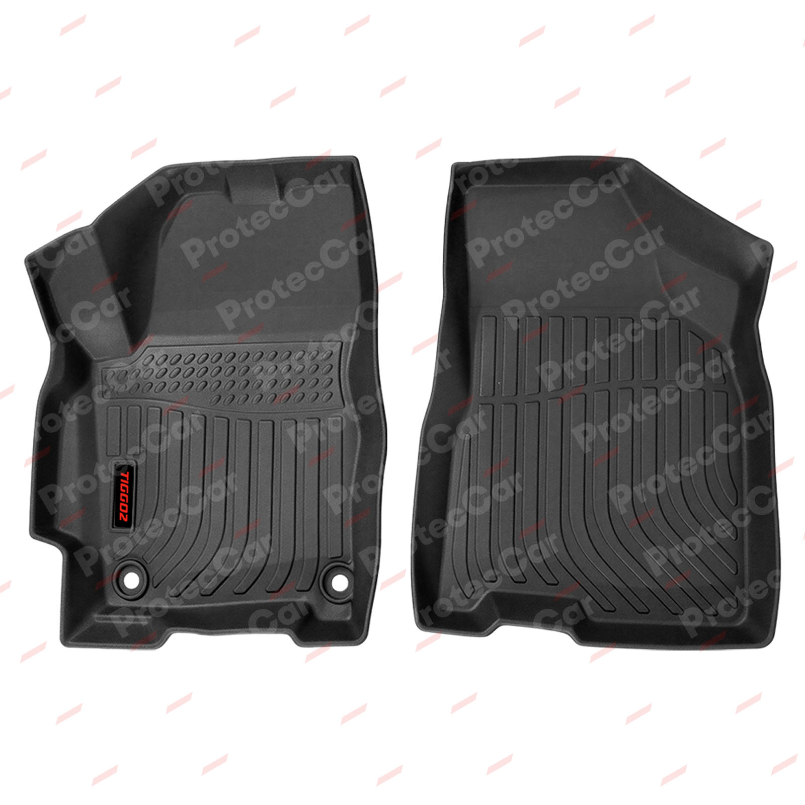 Están fabricadas en látex, son en formato bandeja y hay disponible modelos enterizas o individuales.Todas cuentan con sistema antideslizante, copian el formato del piso y cubren en su totalidad la parte trasera. Estas características dan como resultado alfombras de excelente calidad que además tienen garantía de un año. En las piezas delanteras, vienen con el logo de la marca o modelo del vehículo.